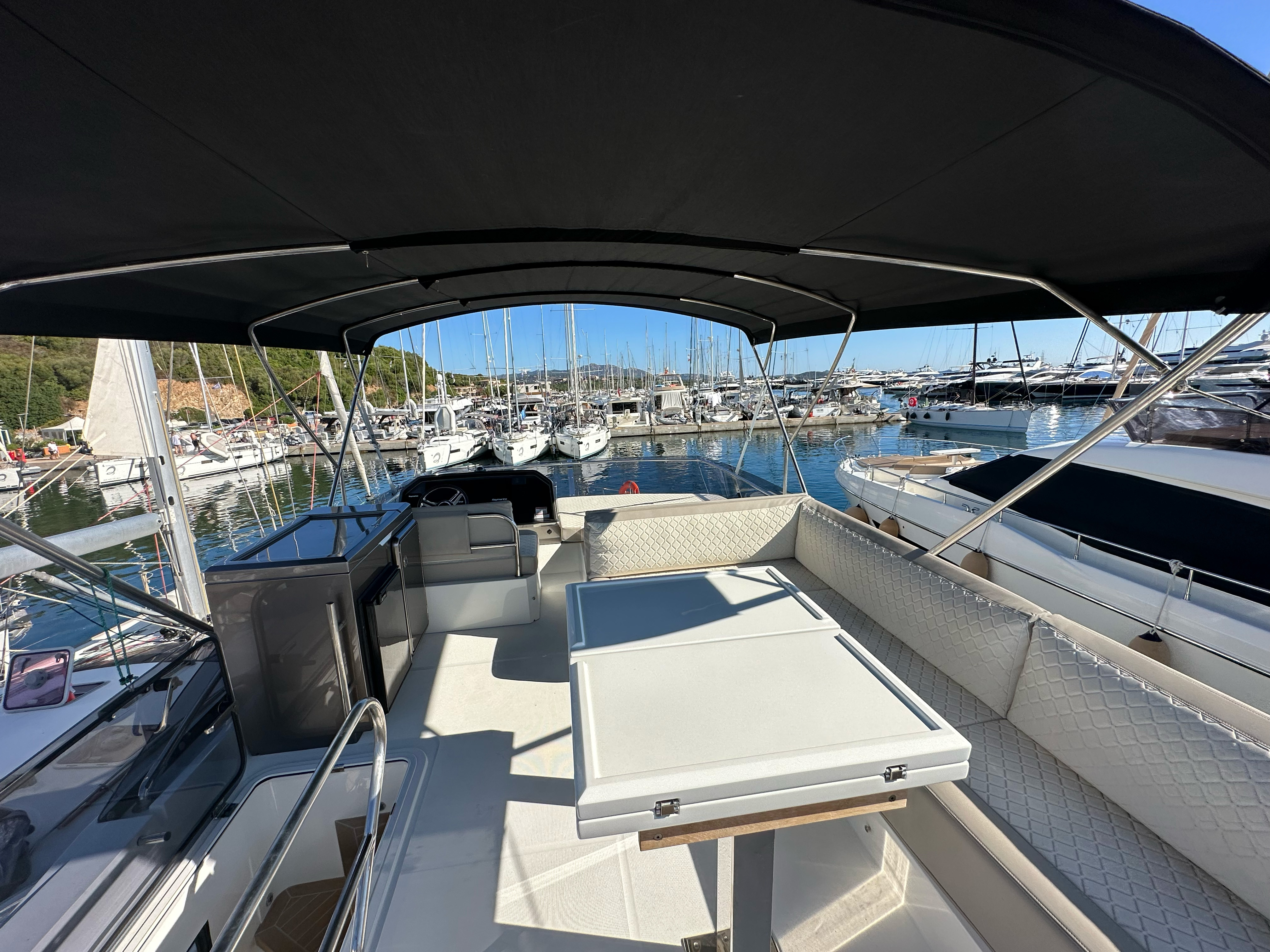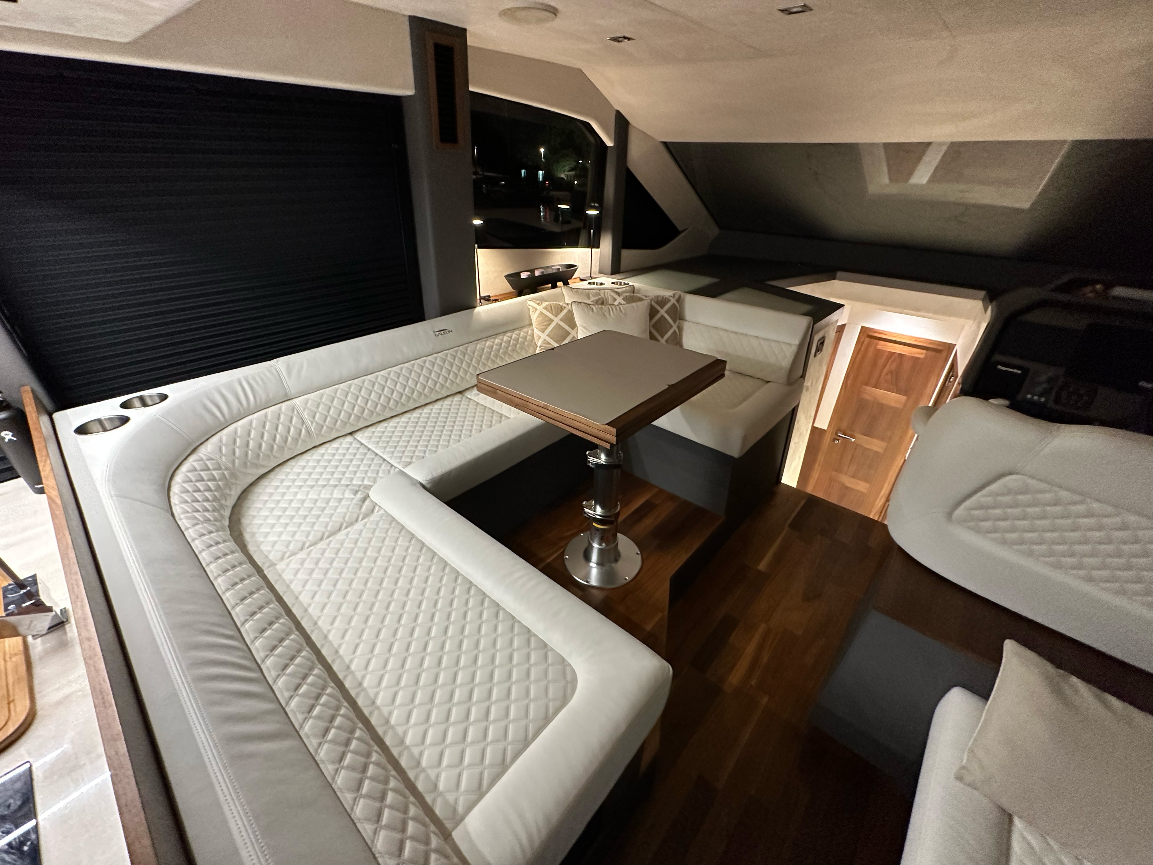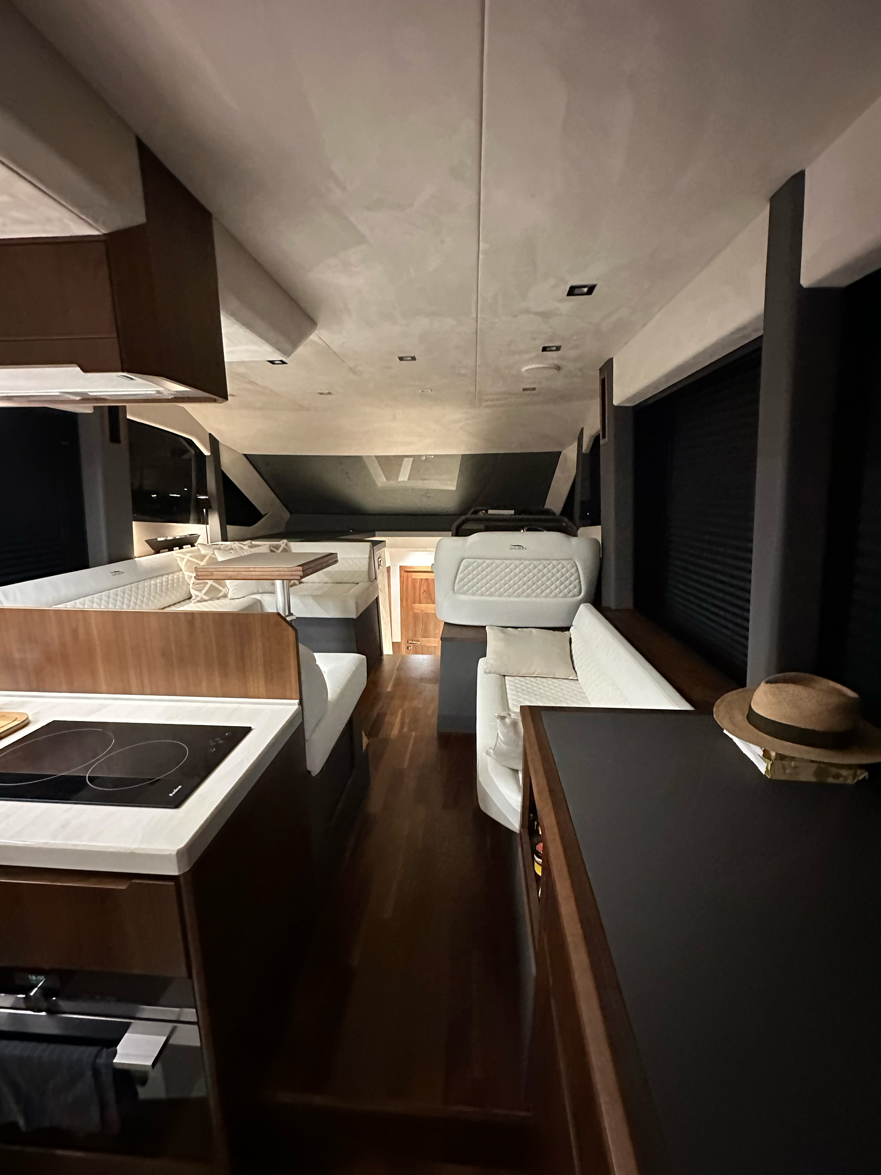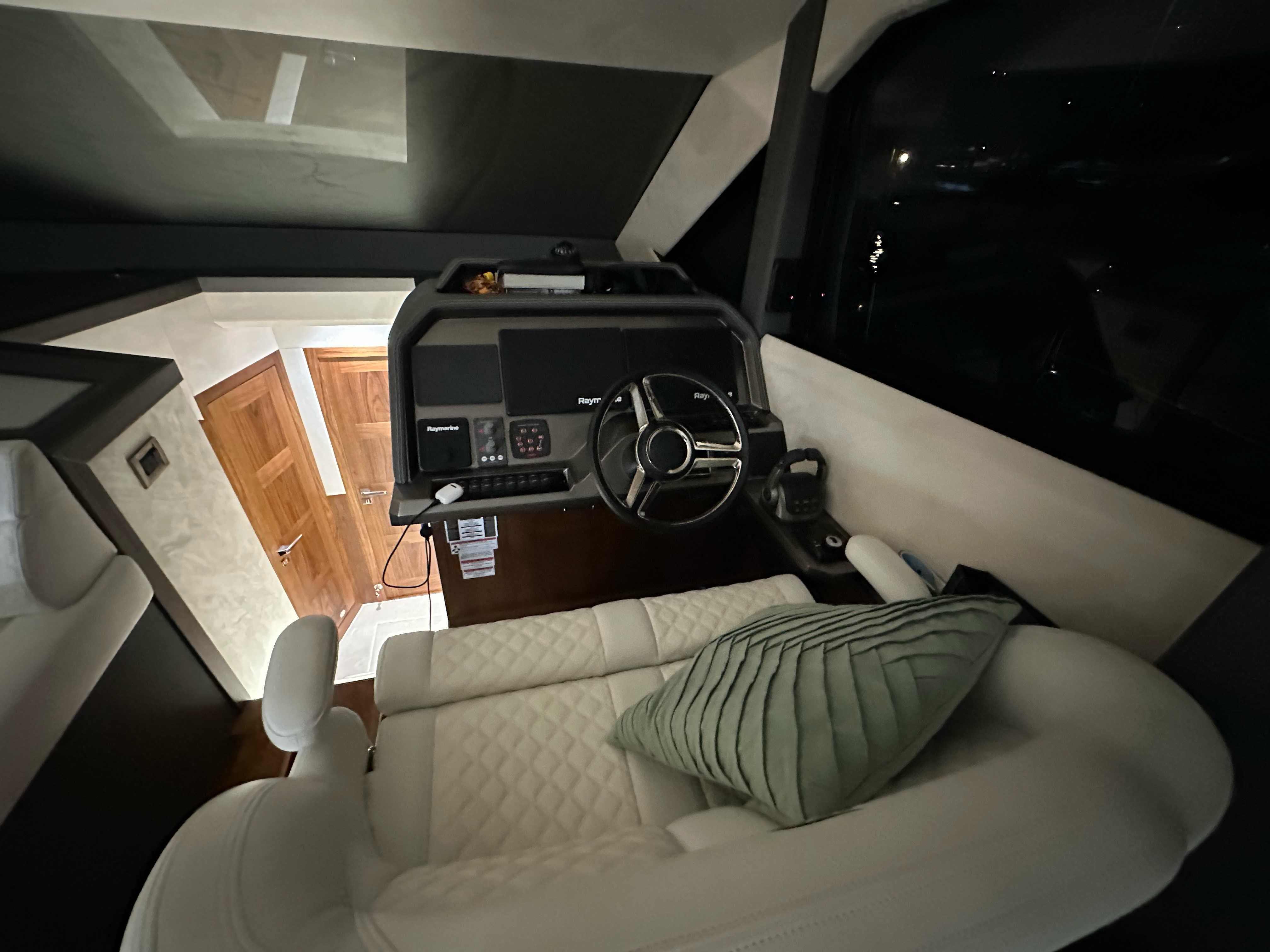 The sleek exterior marks another collaboration with the esteemed Tony Castro Design Studio and is quickly recognizable as it follows the trends set by the fourth generation of Galeon yachts. A unique combination of a dynamic silhouette with sporty accents throughout is complimented by the large windows on both decks that liven up the interior.