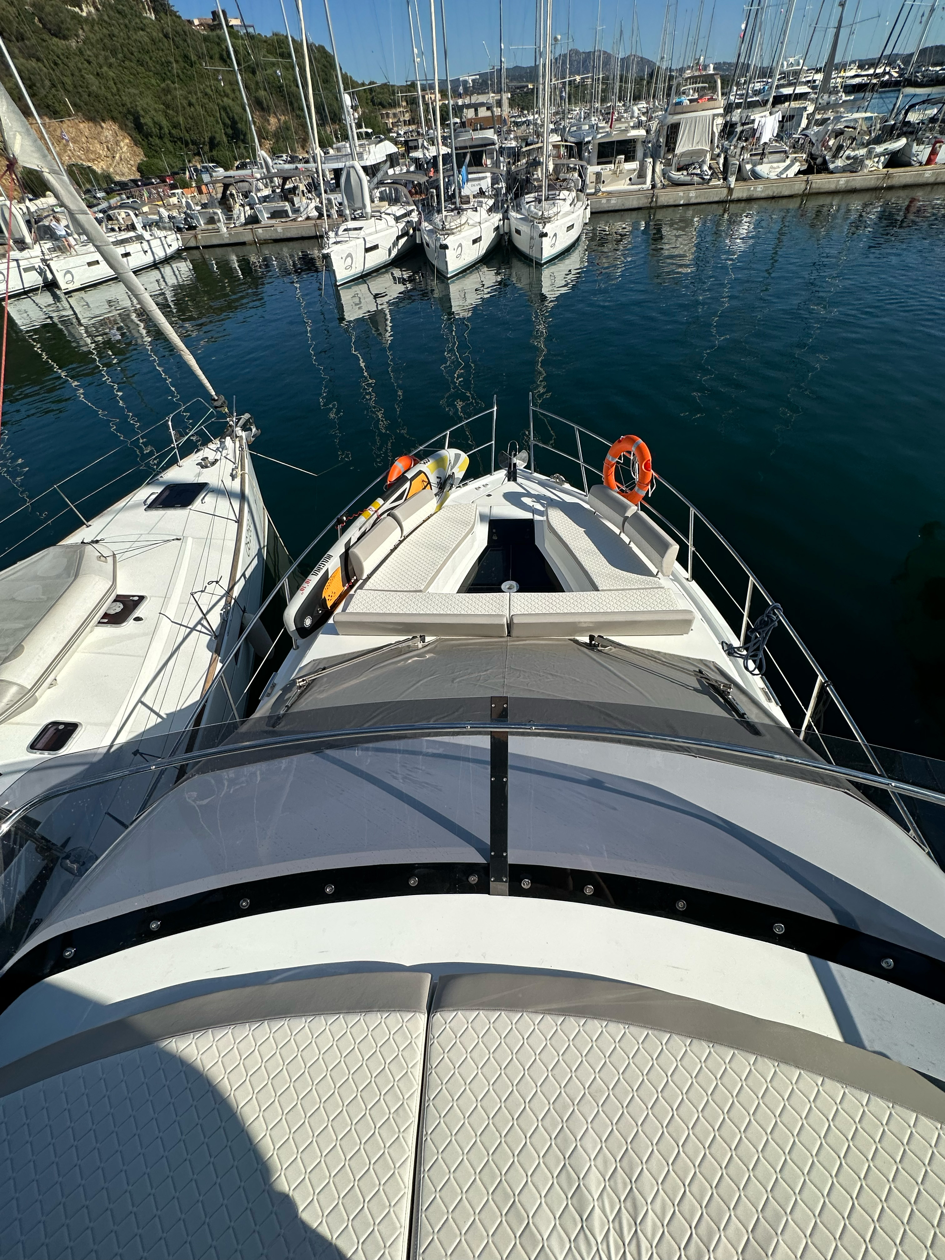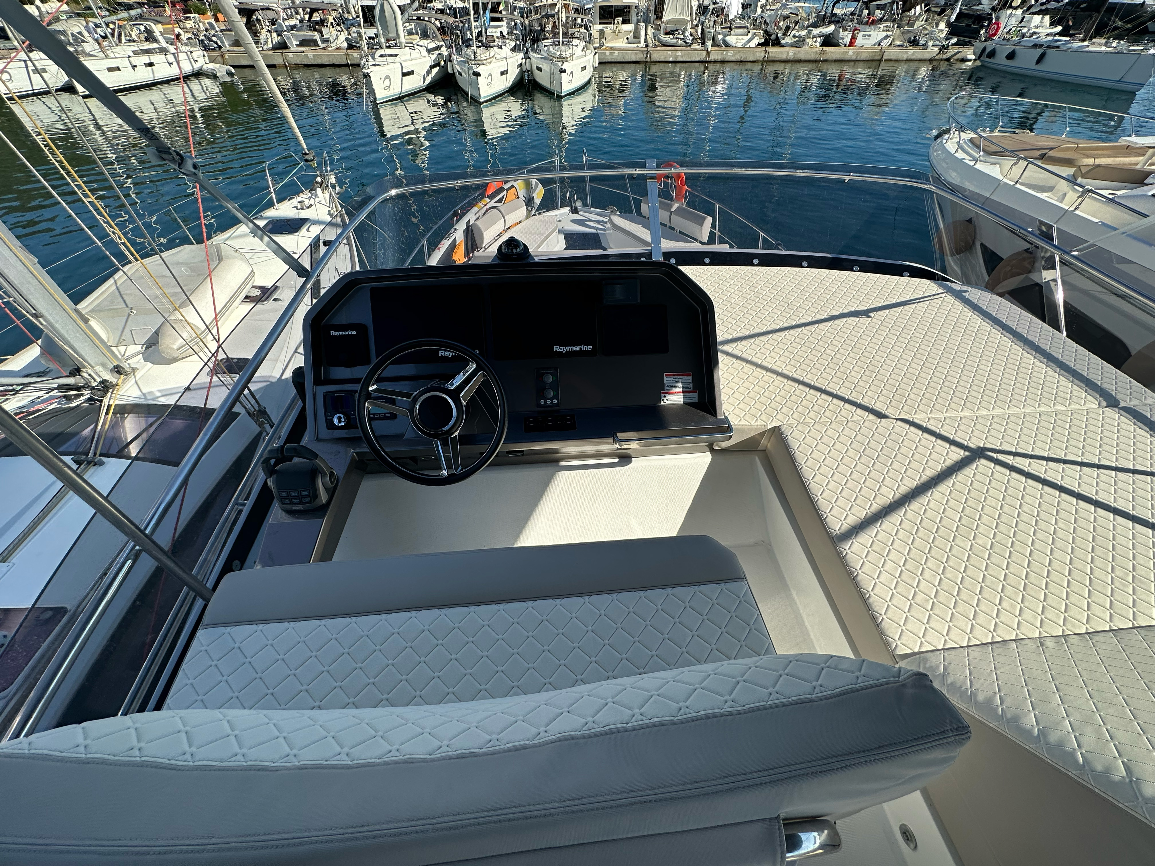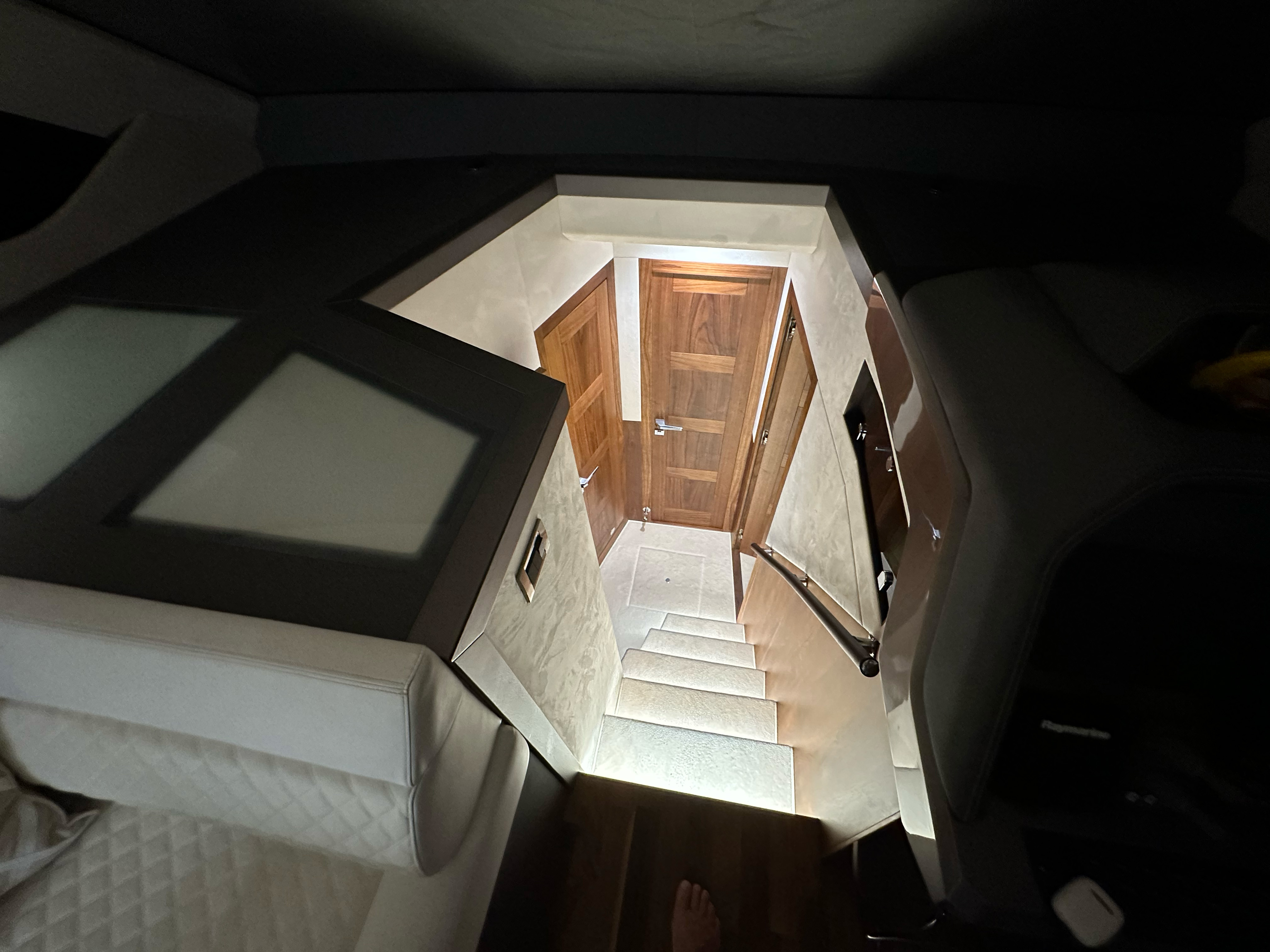 The sleek exterior marks another collaboration with the esteemed Tony Castro Design Studio and is quickly recognizable as it follows the trends set by the fourth generation of Galeon yachts. A unique combination of a dynamic silhouette with sporty accents throughout is complimented by the large windows on both decks that liven up the interior.